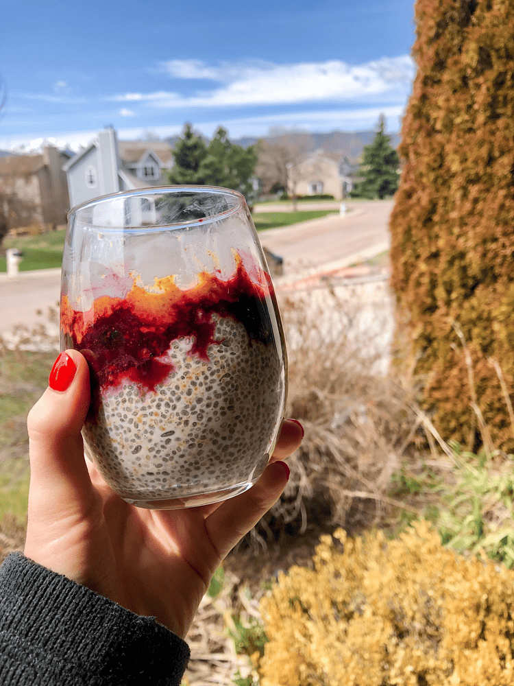 When I worked in an office, I always had chia seed pudding for my mid morning snack because it packs well. Now that I work at home, I make it the morning of for an easy snack break when I need to get away from my desk to sit on my front porch.